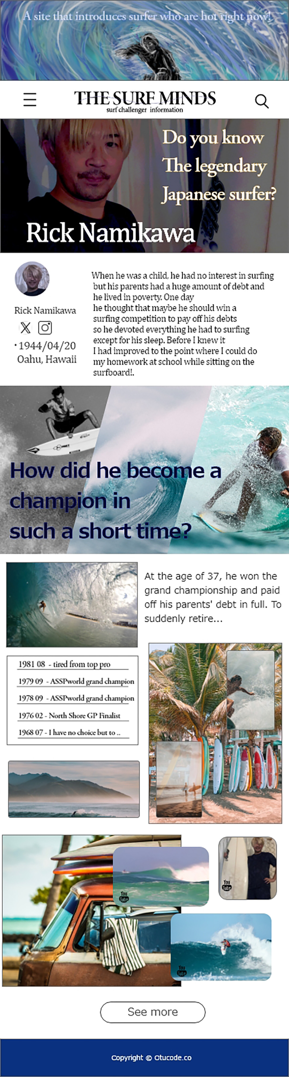 - 海外のサイトのようなデザインを目指して制作。シンプルに画像や文字のインパクトや迫力を伝えることを意識しました。プラスαが欲しかったのためイラストでチューブライドを表現してみました。